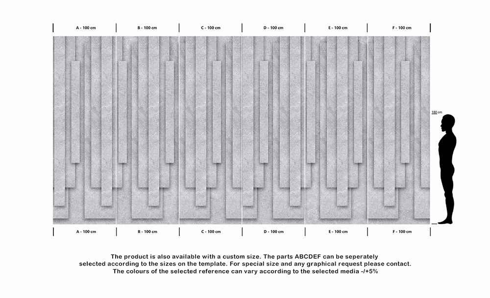 این محصول با سایز دلخواه نیز موجود است. قطعات ABCDEF را می توان به طور جداگانه با توجه به اندازه های روی الگو انتخاب کرد. برای اندازه خاص و هر گونه درخواست گرافیکی لطفا تماس بگیرید. می توانید رسانه را از “راهنمای رسانه” انتخاب کنید.